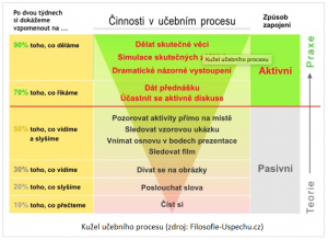 Dostávám se k jádru tématu. Způsob, jakým se učíme, má vliv na to, kolik si zapamatujeme. Jistě znáte kužel učebního procesu: